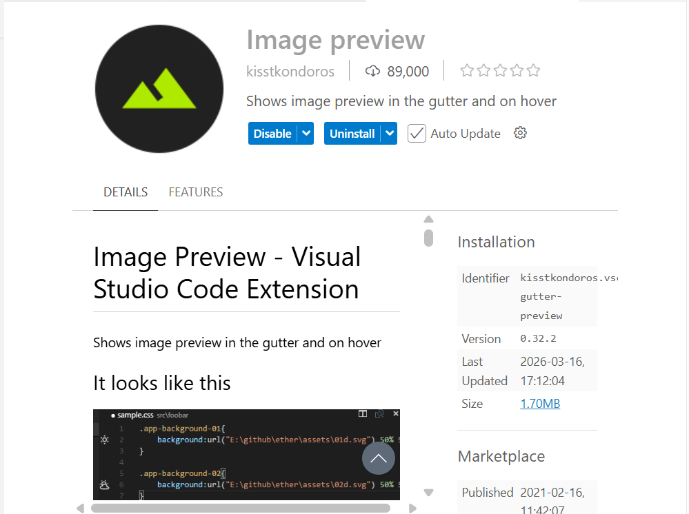 Image Preview 是由 kisst kondoros 开发的一款 VS Code 扩展,功能非常简单却极其实用: