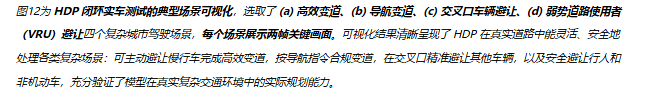 HDP的设计具备数据驱动、轻量化、高可扩展的特性:随着路测数据的积累,模型性能可持续提升;RL后训练策略兼容现有训练管线,无需大幅修改模型;推理速度满足车端实时性要求,工程落地难度低。这一框架让端到端自动驾驶从"实验室研究"走向"工业化部署"成为可能。