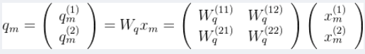 Wq是一个2×2的矩阵,xm是一个2×1的矩阵: