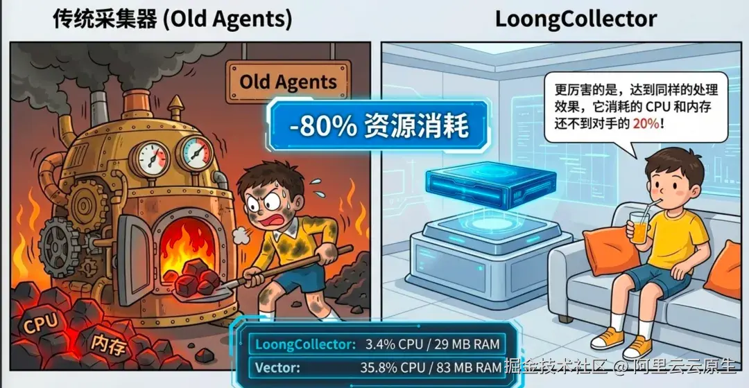 | 指标 | 传统方案 | LoongCollector | 改善 |