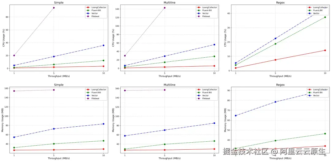 1\] benchmark e2e README [github.com/alibaba/loo...](https://link.juejin.cn?target=https%3A%2F%2Fgithub.com%2Falibaba%2Floongcollector%2Fblob%2Fmain%2Ftest%2Fbenchmark%2Fe2e%2FREADME.md "https://github.com/alibaba/loongcollector/blob/main/test/benchmark/e2e/README.md") \[2\] 阿里云 SLS(Simple Log Service) [www.alibabacloud.com/en/product/...](https://link.juejin.cn?target=https%3A%2F%2Fwww.alibabacloud.com%2Fen%2Fproduct%2Flog-service%3F_p_lc%3D1 "https://www.alibabacloud.com/en/product/log-service?_p_lc=1")