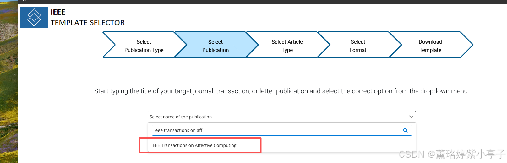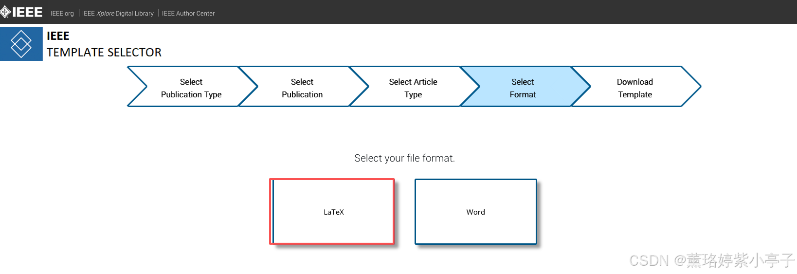 在当前页面,找到IEEE Template Selector (如下图所示),点击进入下一个页面,