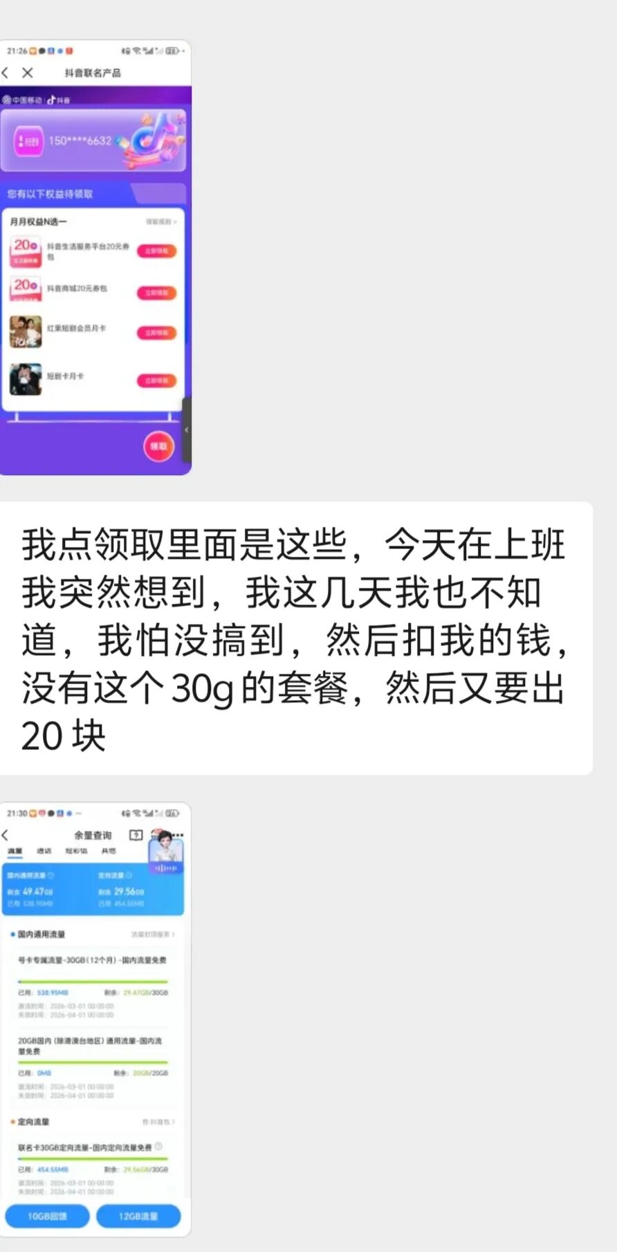 | 改后套餐 | 59元 | 50GB国内流量 | 数百分钟 | 送会员 | 赚了720元/年 |