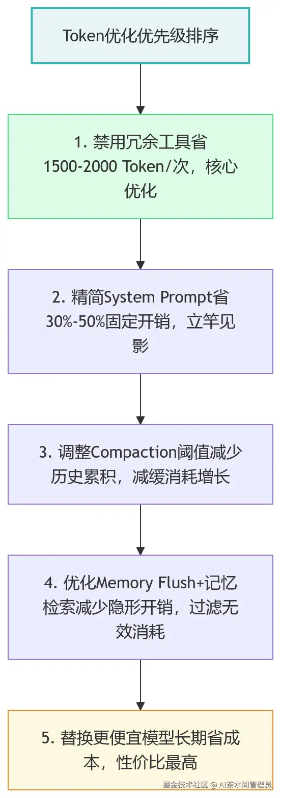 结合前面的拆解,给大家5个可直接落地的优化方法,不用改源码,只改配置、调逻辑,实测能省30%-50%的Token,还不影响使用体验: