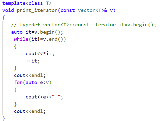 这里我们用模板来写是为了更好的使用vector定义不同的数据类型,使得更加方便