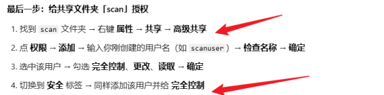 扫描:设置192.168.0.0优先、win10密码登录、文件夹共享、开启SMB。
