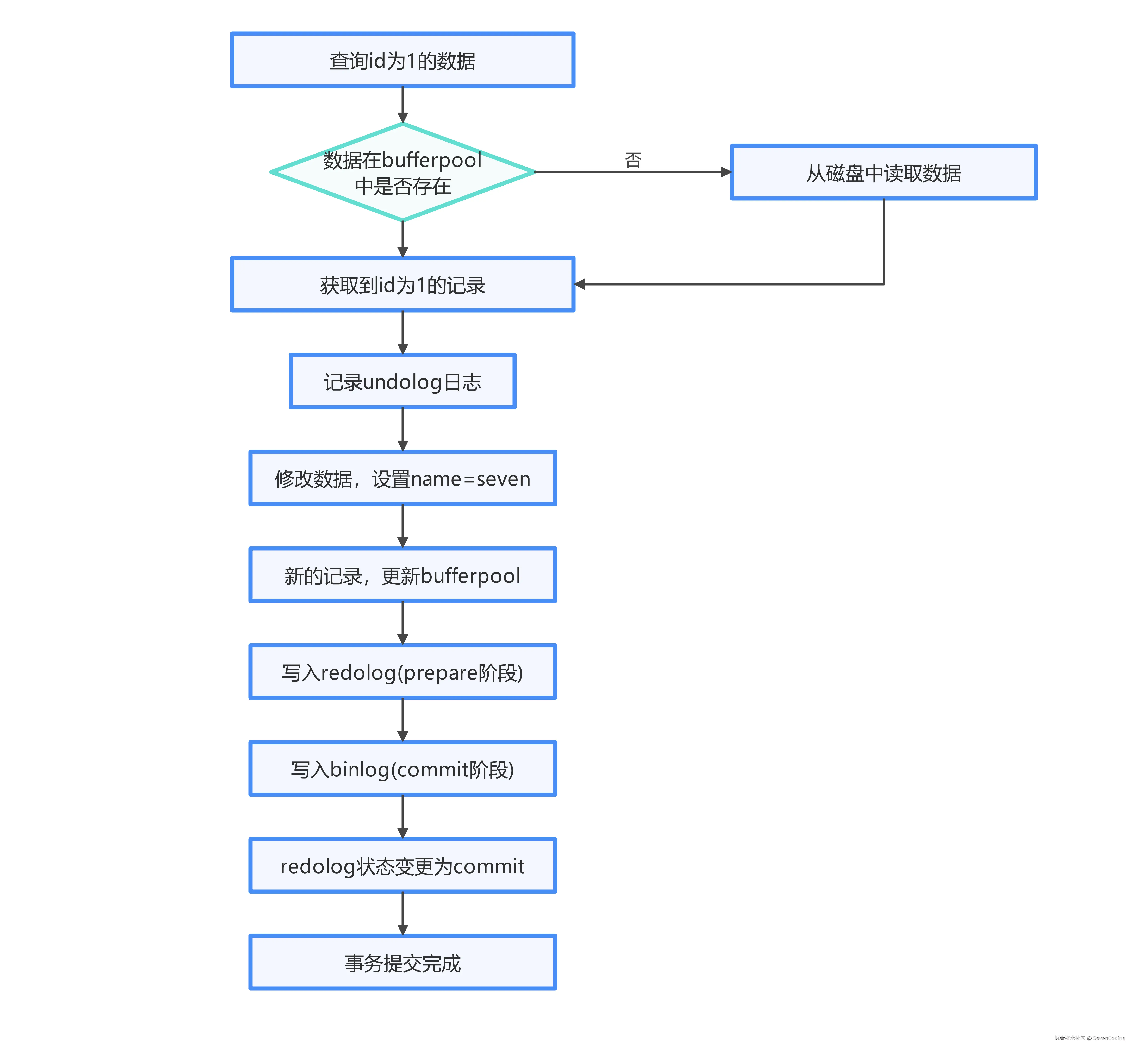 - 拿到存储引擎返回的行记录,把 name 字段设置为 "seven",得到一行新的记录,然后再调用存储引擎的接口写入这行新记录。