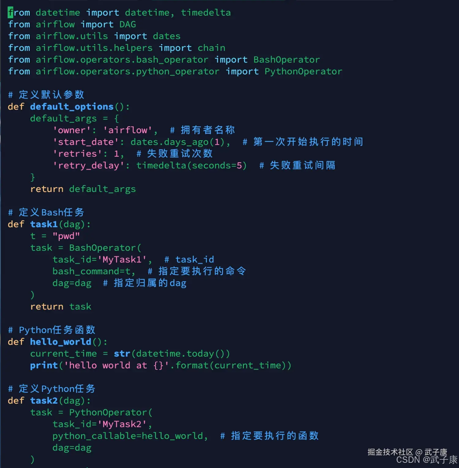 'owner': 'airflow', # 拥有者名称