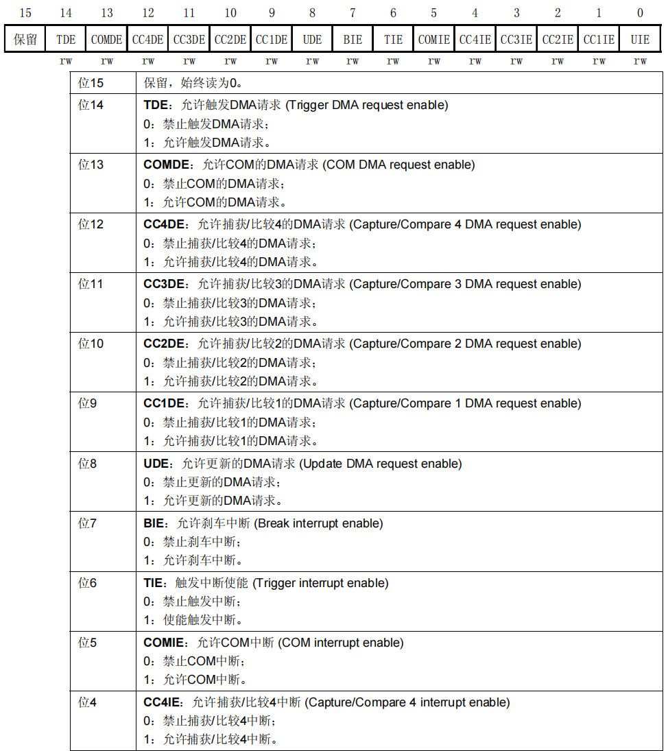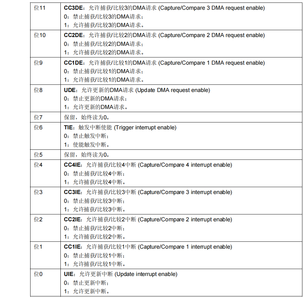 - [ 4、TIM1 和TIM8 DMA/中断使能寄存器(TIMx_DIER)](# 4、TIM1 和TIM8 DMA/中断使能寄存器(TIMx_DIER))