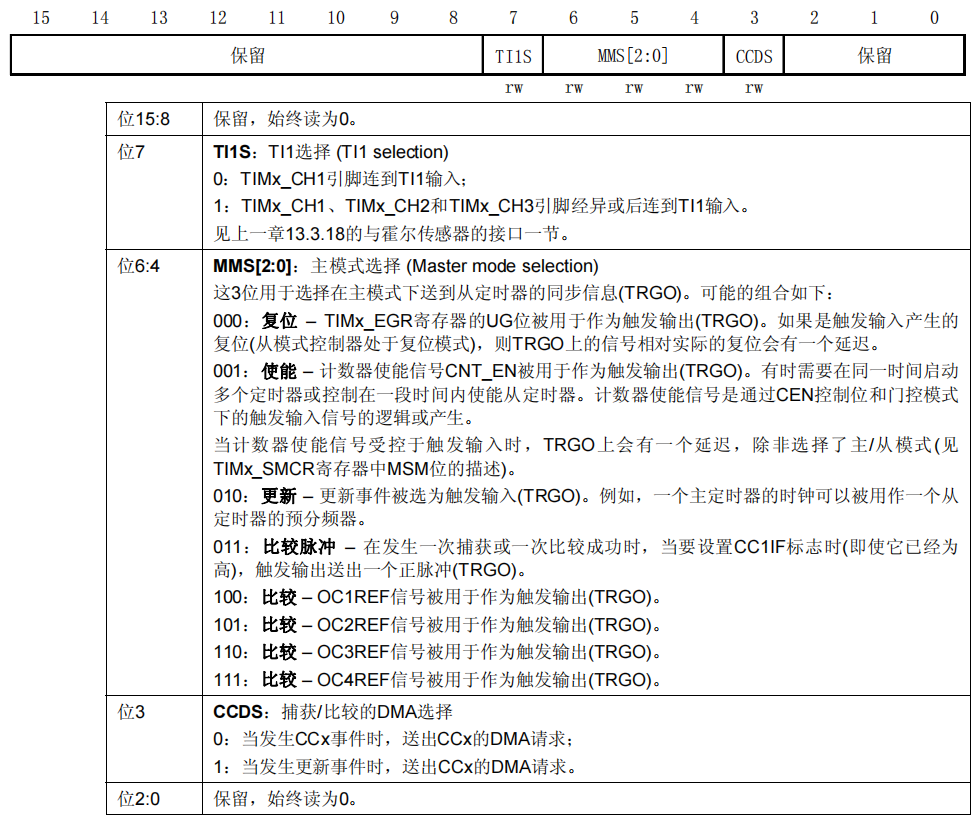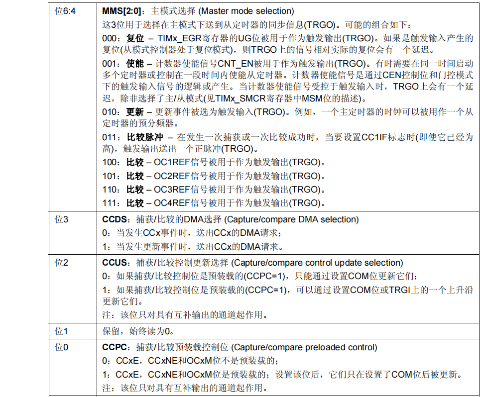 - [ 2、控制寄存器 2(TIMx_CR2)](# 2、控制寄存器 2(TIMx_CR2))