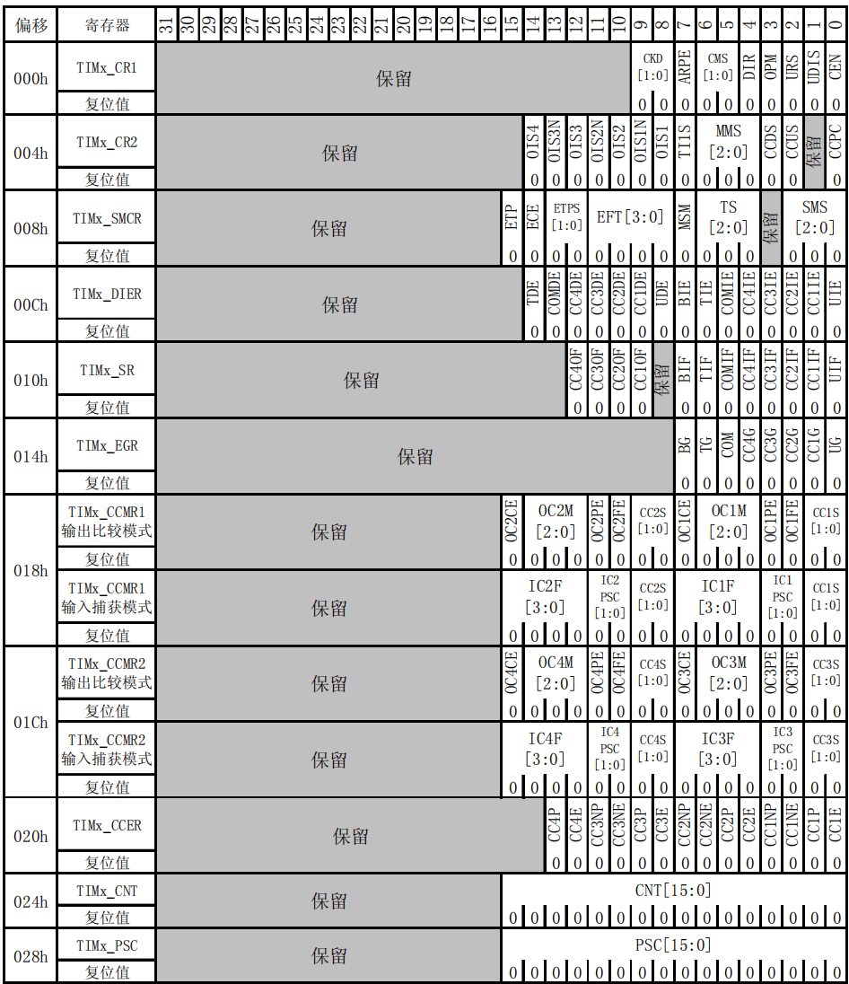 - [一、通用TIMx (TIM2、TIM3、TIM4和TIM5)寄存器](#一、通用TIMx (TIM2、TIM3、TIM4和TIM5)寄存器)