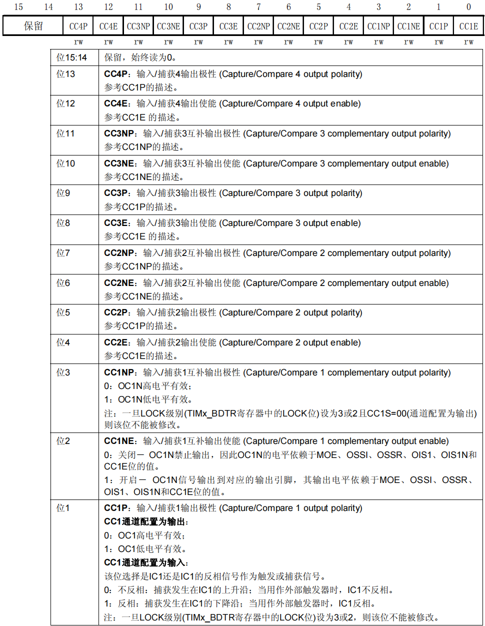 - [ 9、TIM1 和TIM8 捕获/比较使能寄存器(TIMx_CCER)](# 9、TIM1 和TIM8 捕获/比较使能寄存器(TIMx_CCER))