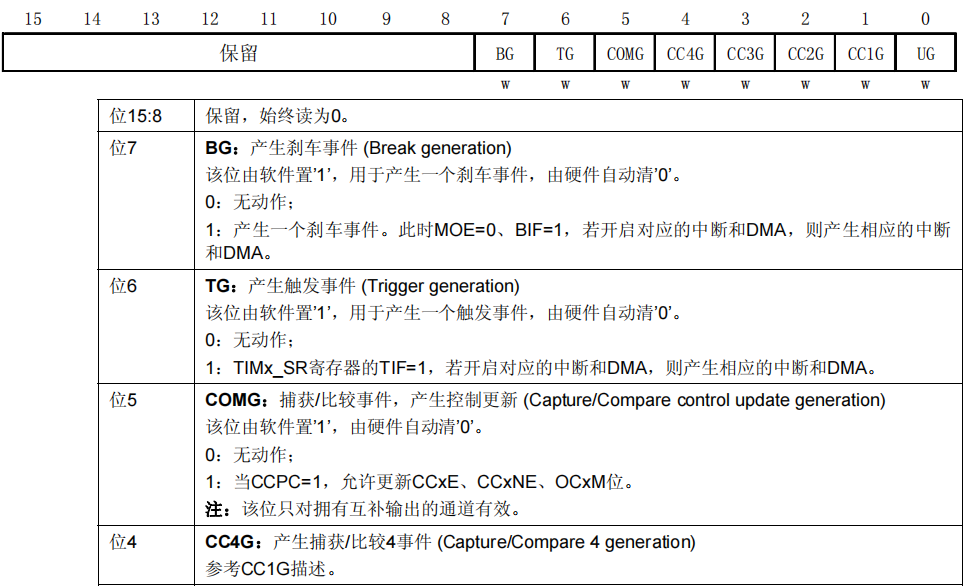 - [ 6、事件产生寄存器(TIMx_EGR)](# 6、事件产生寄存器(TIMx_EGR))