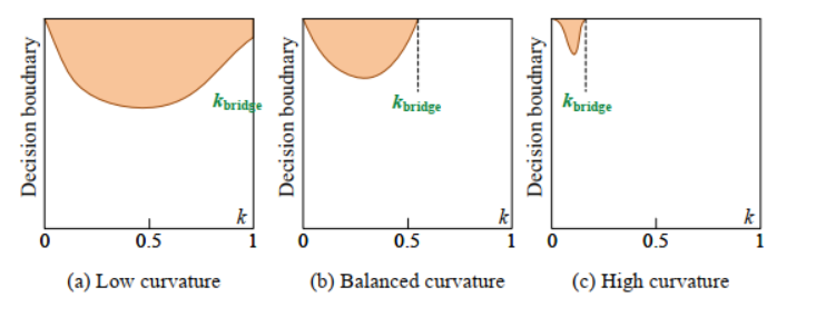 图 2. 具有不同曲率的示例决策边界。