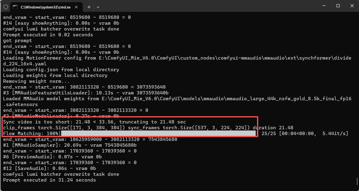 于是我尝试了别的帧率的视频,发现这个mmaudio节点是默认所有视频25帧的,而且不给改,这就很操蛋了,我要是硬件够的话,我还用用16帧???