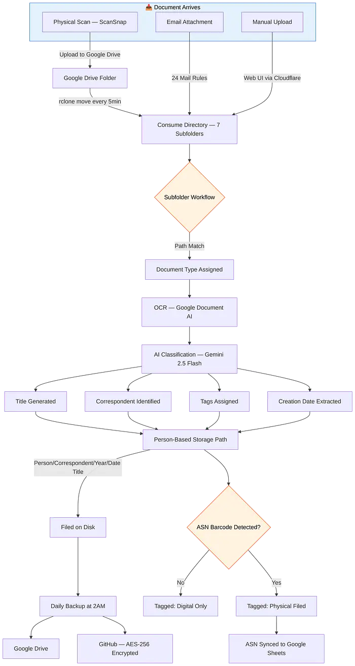 我花了数周时间构建了一个全自动文档管理系统,现在管理着900多份文档,每天零 effort。这篇文章将带你了解整个设置过程------从我桌上的扫描仪到GitHub上的加密备份------包括你需要自己构建的所有配置文件和脚本。