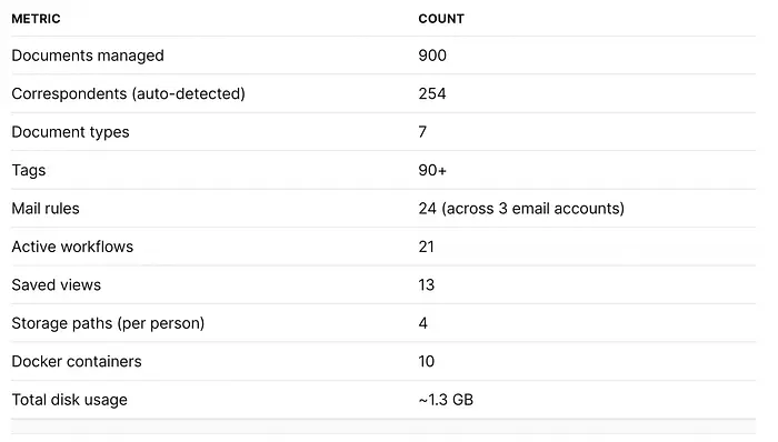**物理-数字桥梁很重要。**带有Google表格备份的ASN条形码系统意味着我永远不会丢失物理文档存储位置的追踪。即使我的服务器死了,我也可以通过ASN编号查找任何文档。