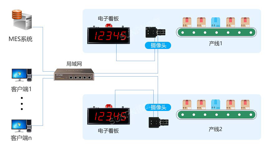 **3. 数据生成与输出:**计数结果实时显示在本地数码管看板或电子看板上,同时通过RS485或API接口上传至MES系统或第三方平台,形成可追溯的流量统计报表。