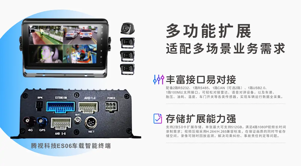 作为车载智能领域的创新者,腾视科技始终以"技术驱动安全,智能赋能交通" 为使命。从ES06车载智能终端的研发,到多行业定制化解决方案的落地,腾视科技始终聚焦用户需求,不断优化算法性能、拓展功能边界。