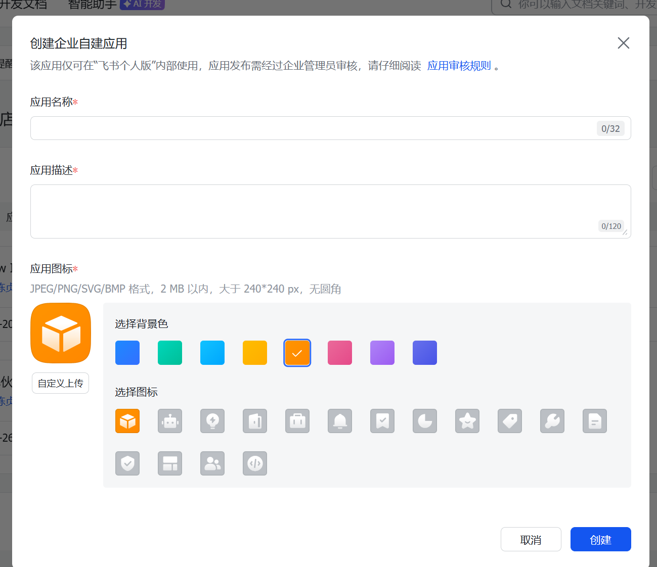 打开飞书开放平台后台:开发者后台 - 飞书开放平台 -> 登录注册 -> 创建企业自建应用