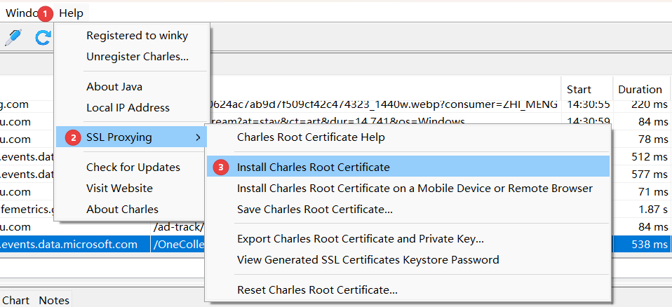 点进其中一条线路页面,Charles会出现与之对应的网络请求日志和HTTP 请求报文。