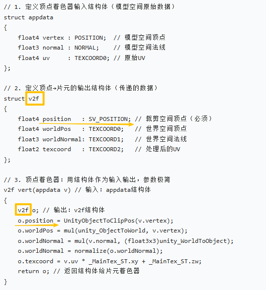 最后通过[结构体名称].[变量名称]的语法访问,例如:v.vertex表示访问名称为v的结构体内的vertex变量