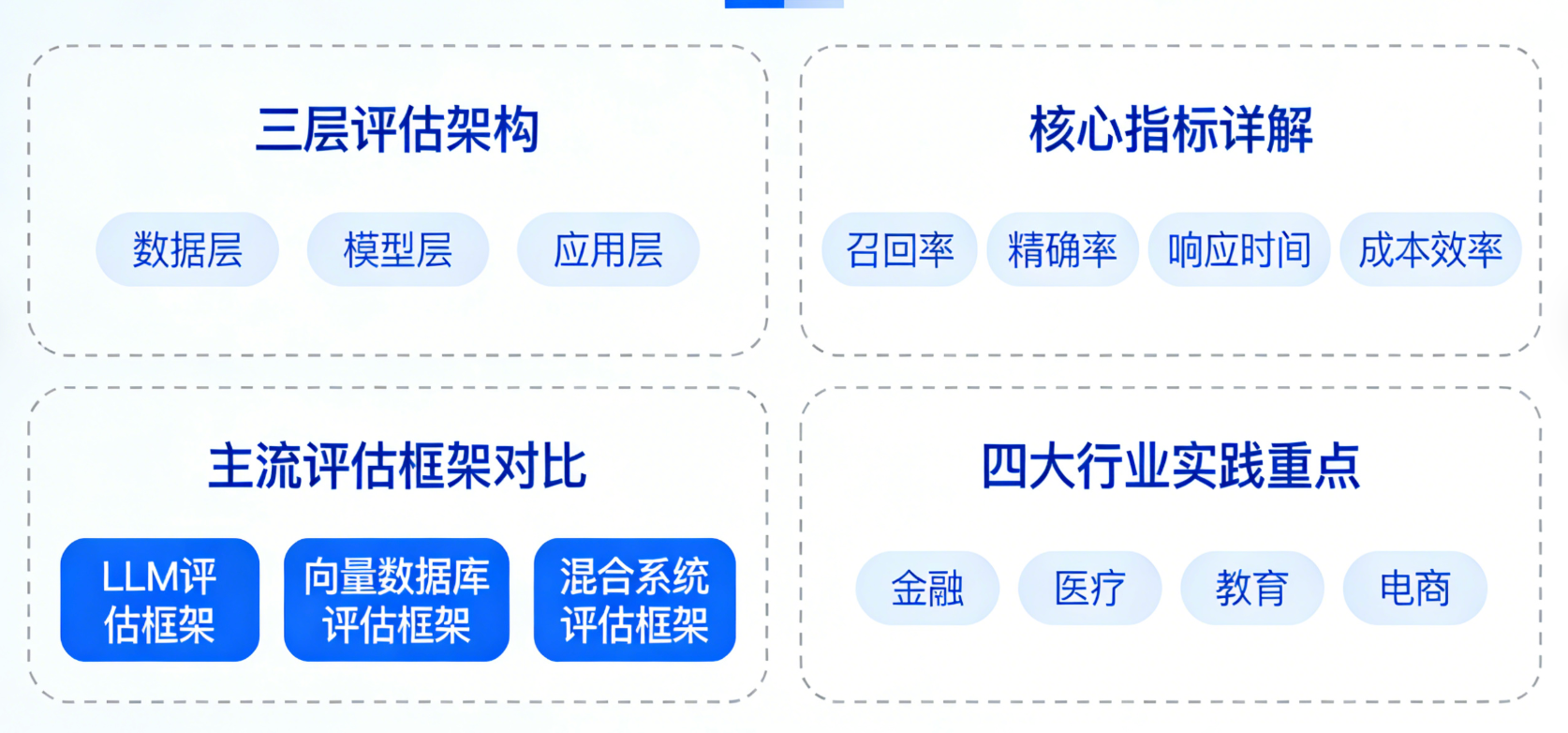 医疗行业的评估最佳实践总结下来有三点:一是建立严格的召回率标准,确保不遗漏关键信息;二是实施多层次评估体系,从单一指标升级到多维度综合评估;三是建立持续监控体系,定期评估系统性能,及时纠正偏差。