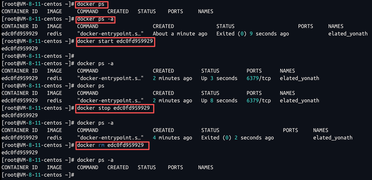 命令后面参数跟 NAMES 和 CONTAINER ID 均可