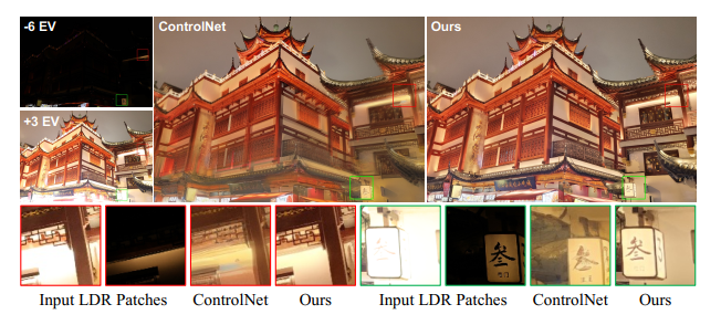 少数引入扩散先验的工作仅针对单张图像 HDR 重建,无不同曝光图像作为参考,生成结果的可靠性不足;