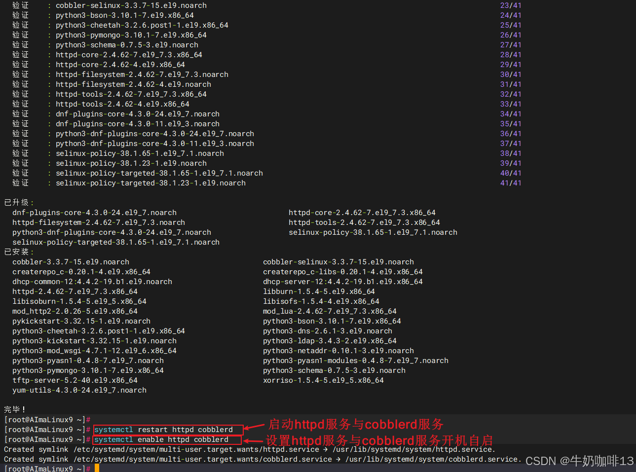systemctl enable httpd cobblerd