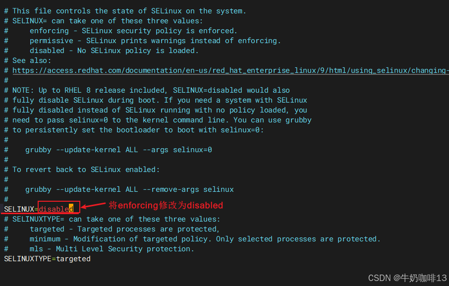 #2.3-永久禁用SELinux(打开SELinux的配置文件,且将【SELINUX=enforcing】修改为【SELINUX=disabled】)