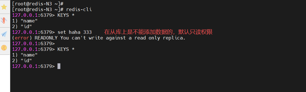 [root@redis-N1 ~]# redis-cli