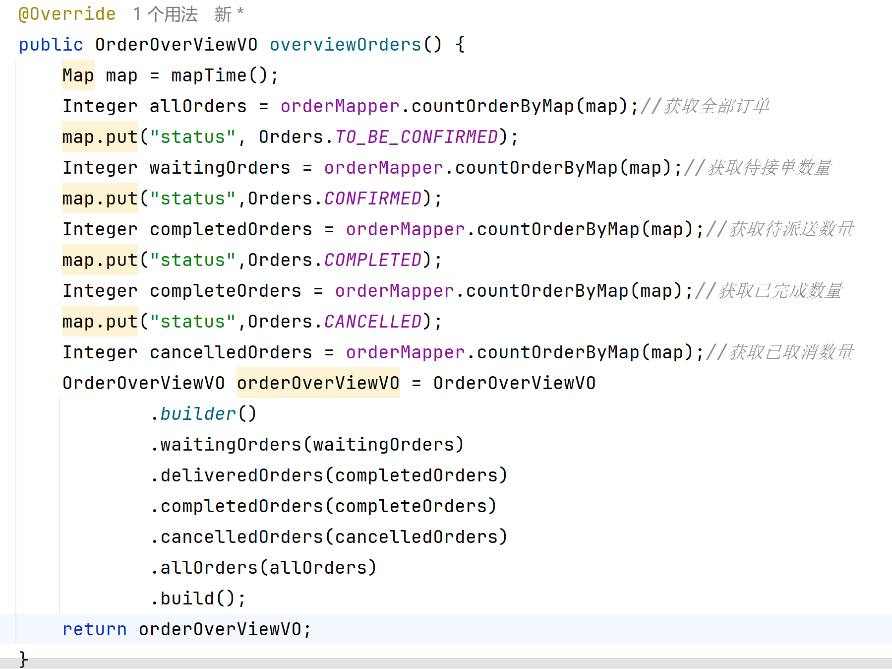 Integer validOrder = orderMapper.countOrderByMap(map);//每日有效订单数