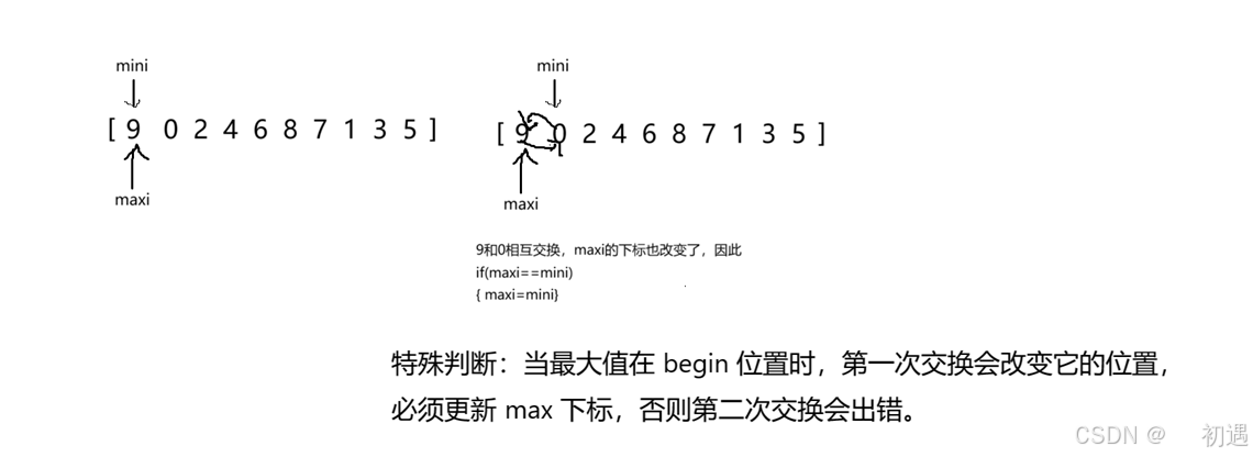 // 第一步:把最小值交换到当前区间的起始位置(begin)