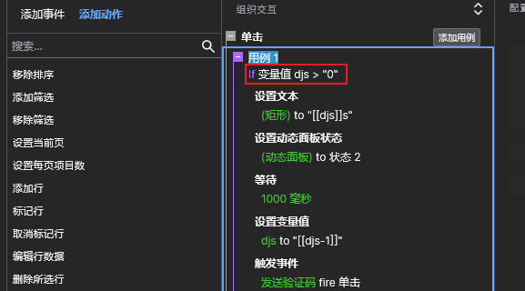 第二个动作【设置变量值】将【djs】变量恢复为60秒默认