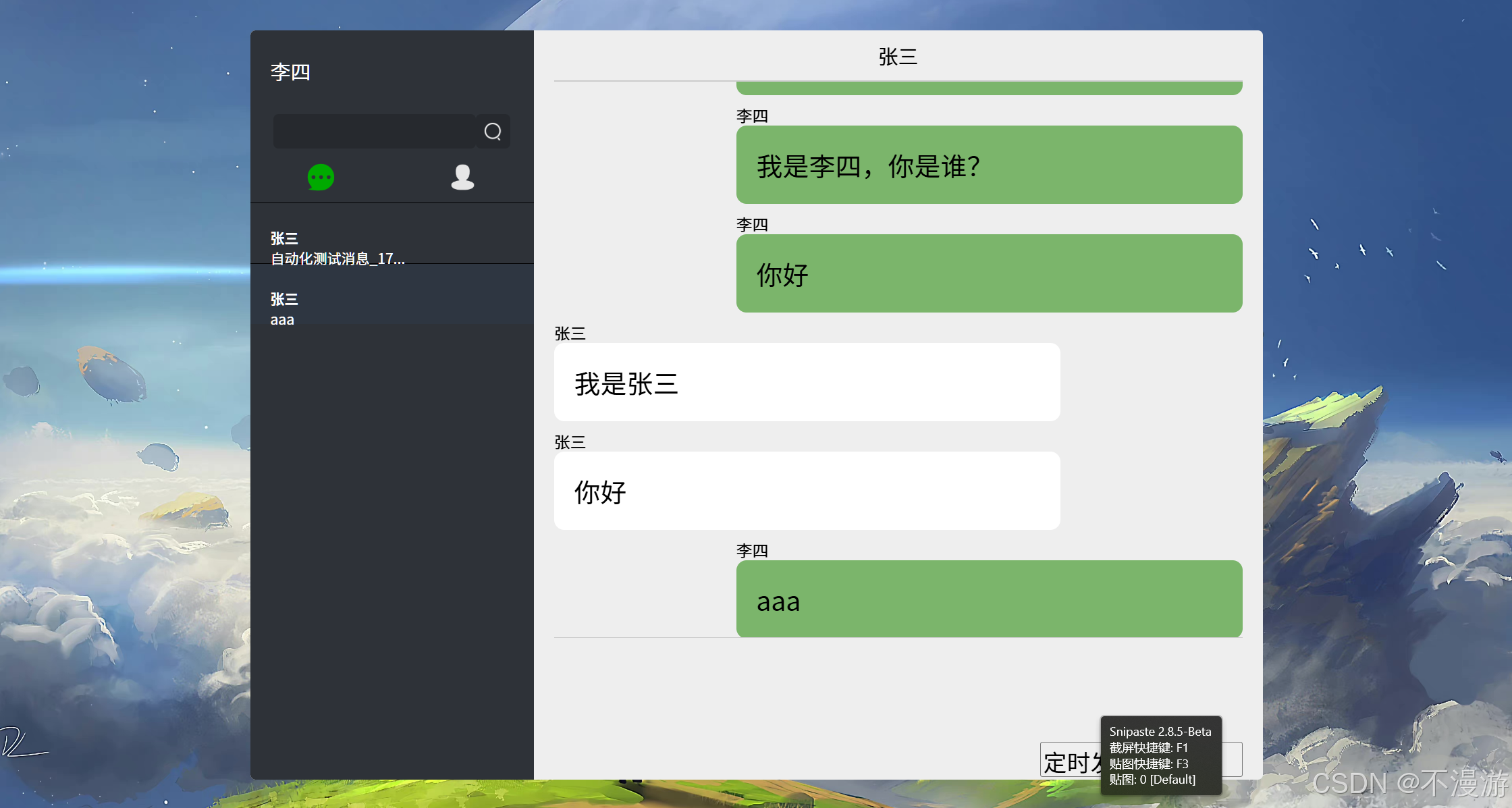 | 点击联系人查看消息 | 跳转至聊天页面并显示历史记录 | 跳转正常,历史记录完整显示,符合预期 |