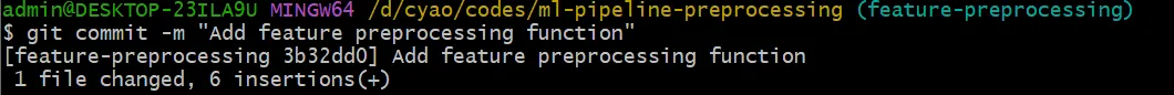 现在你得到了一个有 2 个分支的 Git 仓库: main 和 feature-preprocessing 。