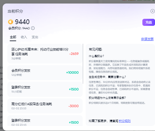 生成一些,365分用完了,就重置45元包月,买了10000分
