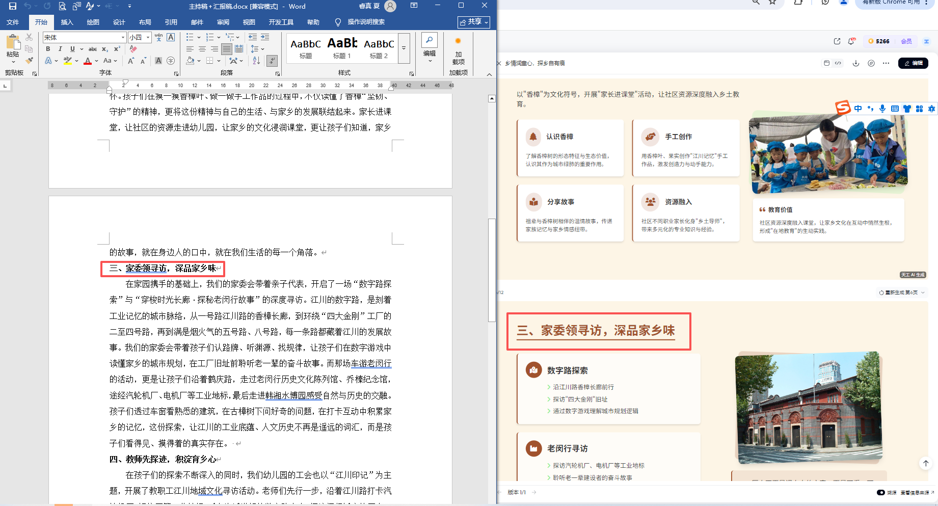 后来我想,是不是已经我用了"托育"这个PPT的关键词(里面已经有一个托育的文稿)所以本次"社区PPT"实际用了两个DOCX内容,或参考了"托育PPT"的板式内容