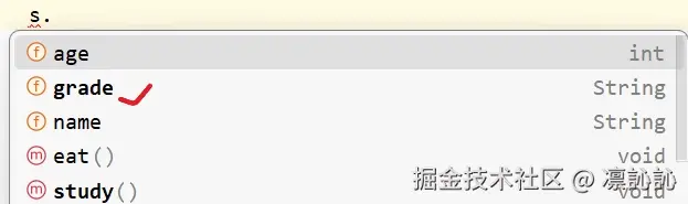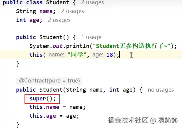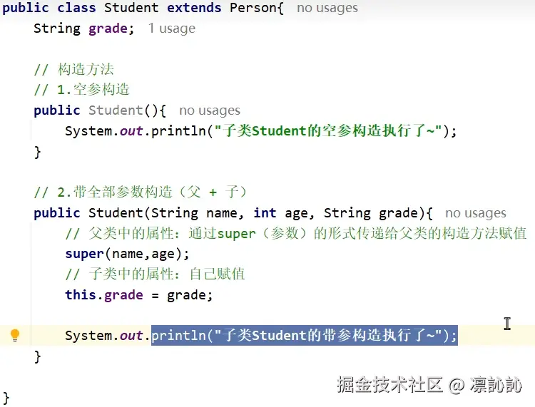 - (tips:父类继承的属性如name在Idea中时普通字体,而子类特有 的属性用了加粗字体)