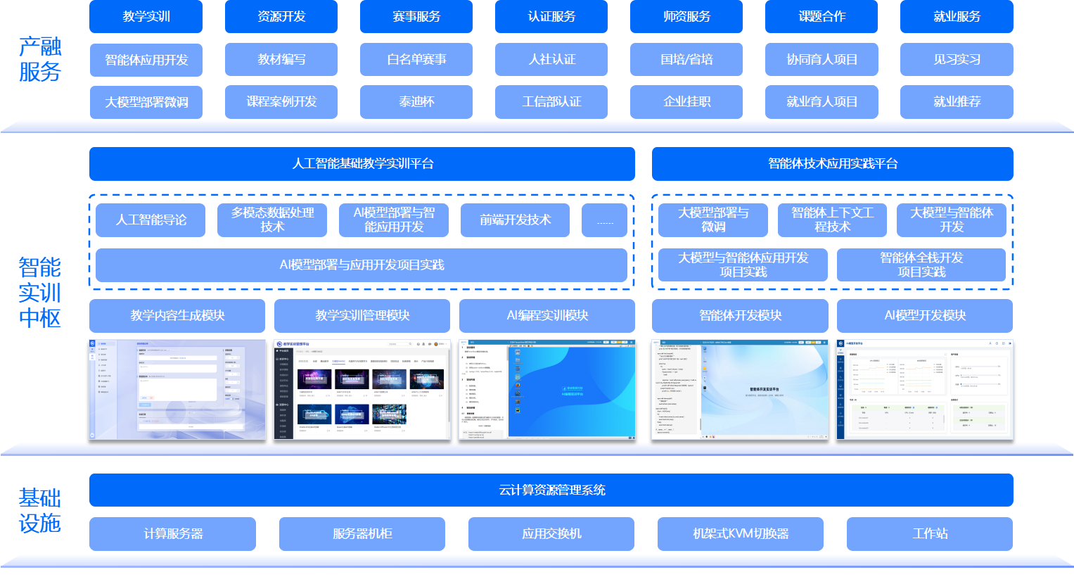 核心课程:《人工智能导论与伦理》、《Python编程与数据分析》、《大语言模型原理与应用》、《智能体开发平台与实践》、《多模态AI技术应用》、《智能体API集成与工具调用》等。