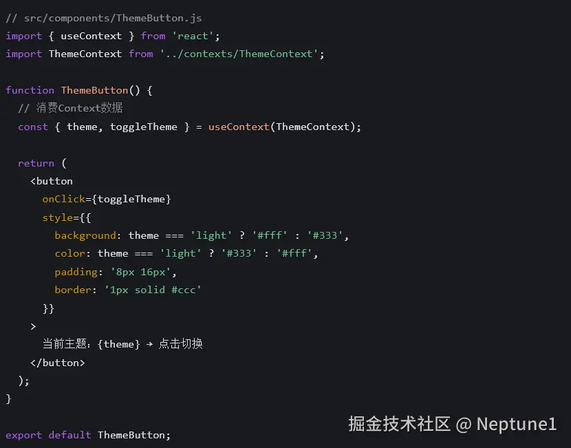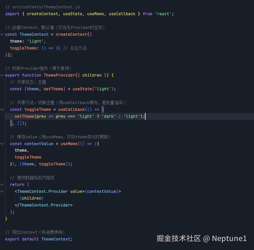 以「主题切换」为例,演示从创建 Context 到消费数据的全流程: