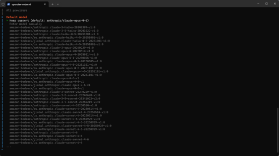 Model/auth provider,若有模型的Api key这步可以配置,没有则选择"Skip for now",后续可以配置