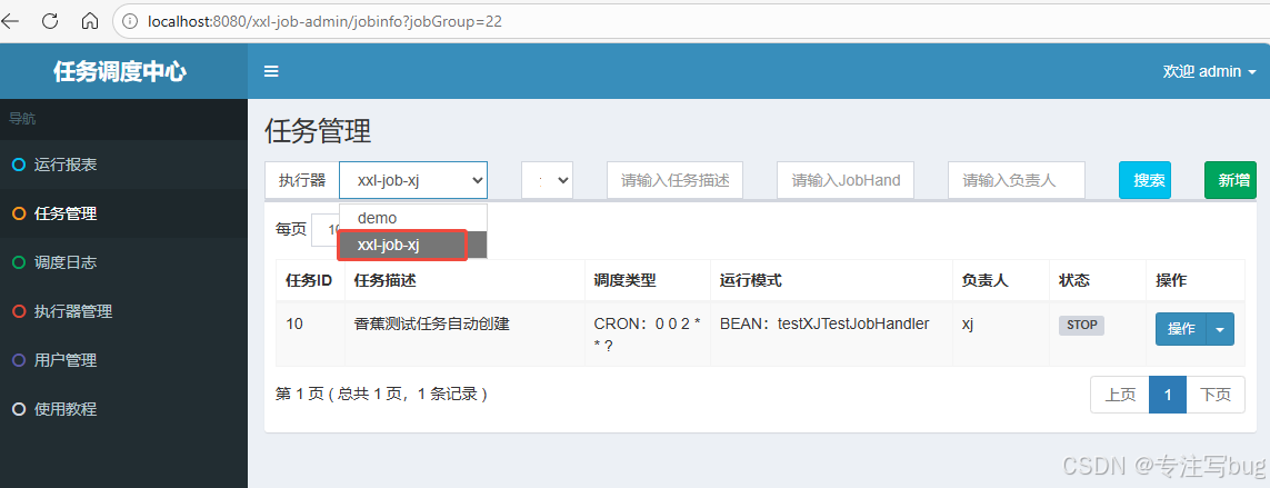 执行器分为创建和查询接口,查询使用页面的pageList即可,这里注意数据过滤使用的是模糊查询。注意这些接口需要携带cookie。
