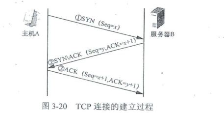 TCP 连接的建立是一个 3 次握手的过程,即 3 次数据段的交互过程,如图 3 - 20 所示。 在这 3 次握手过程中,两端彼此交互的数据段均没有 Data 字段部分,每一次交互完成后, 两端的 TCP 连接建立状态会发生一次变化。TCP 连接建立好后,即建立好了端到端的传 输通道,两端就可以正式相互发送数据了。