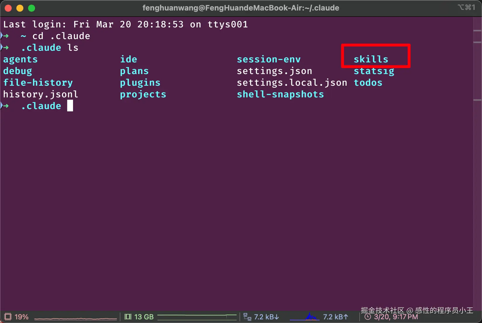 下面是 Claude Code 的 skills 文件夹