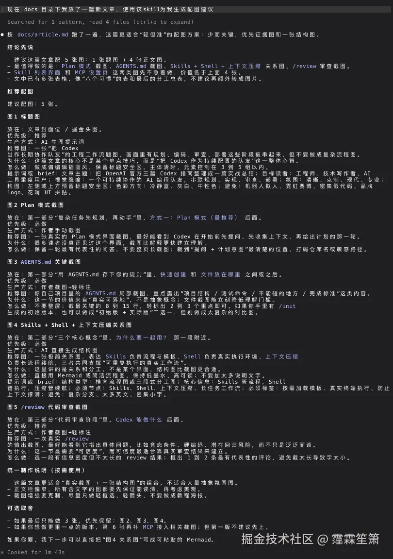 真正让我觉得这个 skill 开始有价值,是因为我很快就拿那篇正在写的 Codex 长文,实打实跑了一遍。