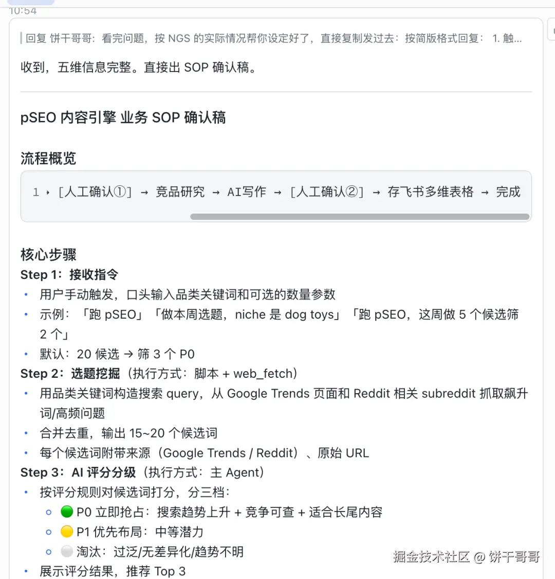 昨晚,我把一张公司内部的 pSEO 业务流程图发给了我的一只龙虾。