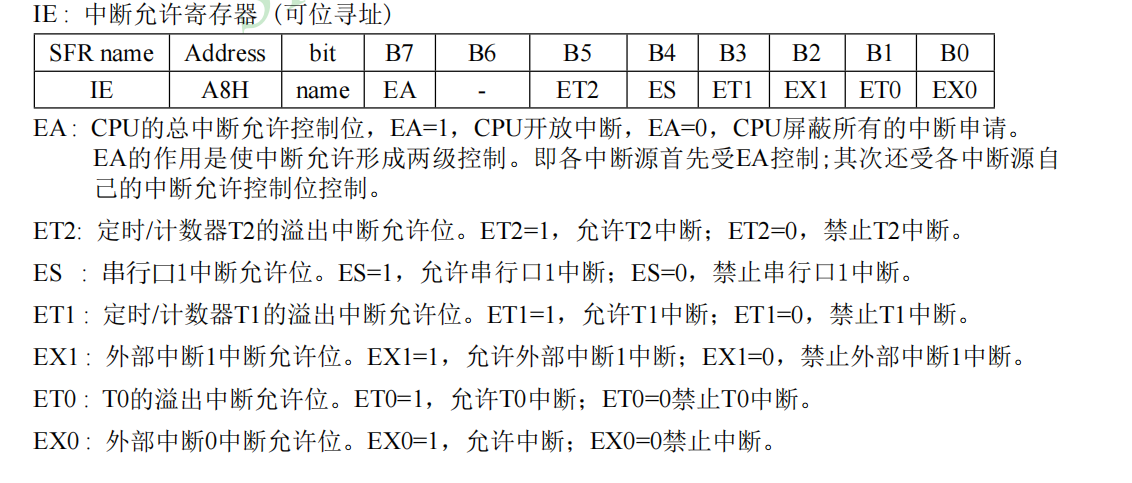 (2)检查cpu是否响应中断(总开关,与IEbit7有关)及该中断源是否被屏蔽(子开关)