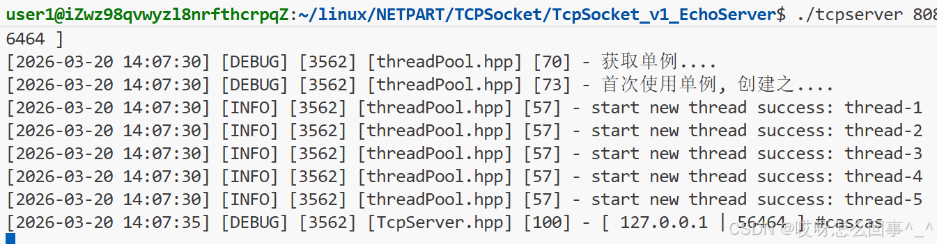 改为线程池版本,这就是一种短服务,因为线程池中线程的个数是有限的,不可能一直为那几个客户端提供服务,线程池一般比较适合处理短服务
